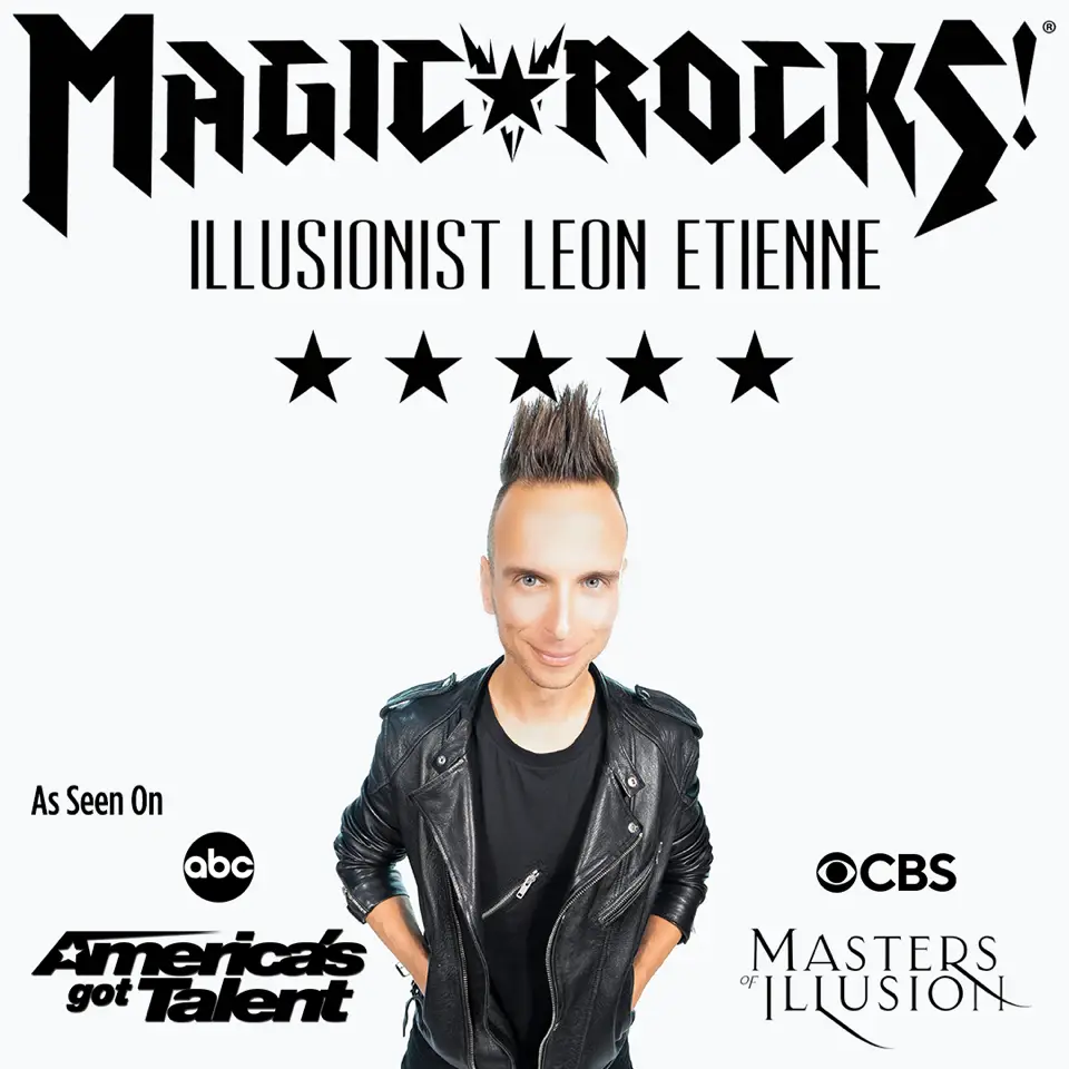 Experience the magic, music, and mayhem of Magic Rocks, starring master illusionist Leon Etienne — as seen on America’s Got Talent and Penn & Teller: Fool Us!. A high-energy, interactive illusion spectacular that leaves audiences amazed and smiling.