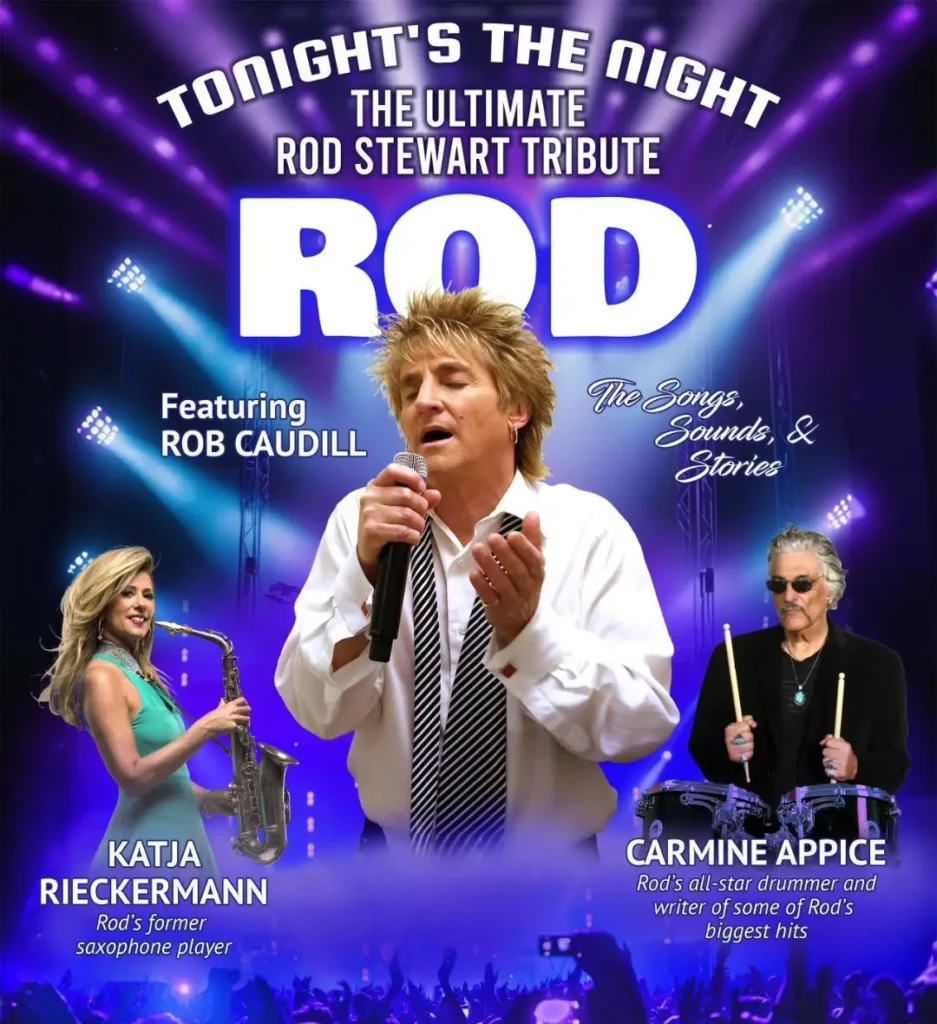 Rob Caudill’s Tonight’s the Night is the ultimate celebration of the music and legacy of Rod Stewart. With uncanny vocals, signature swagger, and an incredible all-star band, Rob brings the fun, sound, and excitement of a Rod Stewart concert to life!